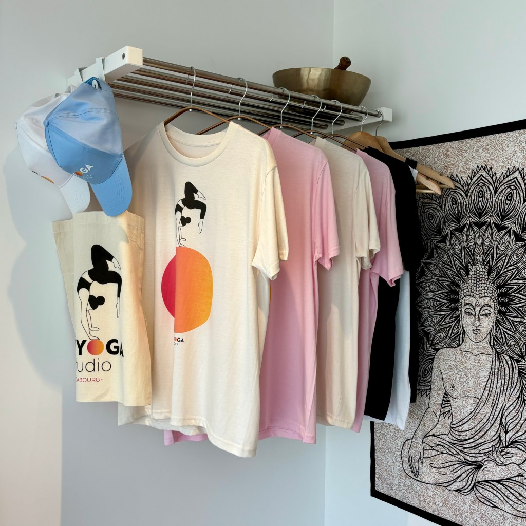 Notre ligne comprend des t-shirts et débardeurs confortables et stylés, parfaits pour vos séances de yoga ou vos sorties décontractées. Pour ceux qui veulent ajouter une touche sportive à leur quotidien, nous proposons aussi des casquettes au design épuré. Et pour transporter vos affaires avec style, nos tote bags pratiques et résistants seront vos alliés idéaux, que ce soit pour aller au studio, faire vos courses ou flâner en ville.