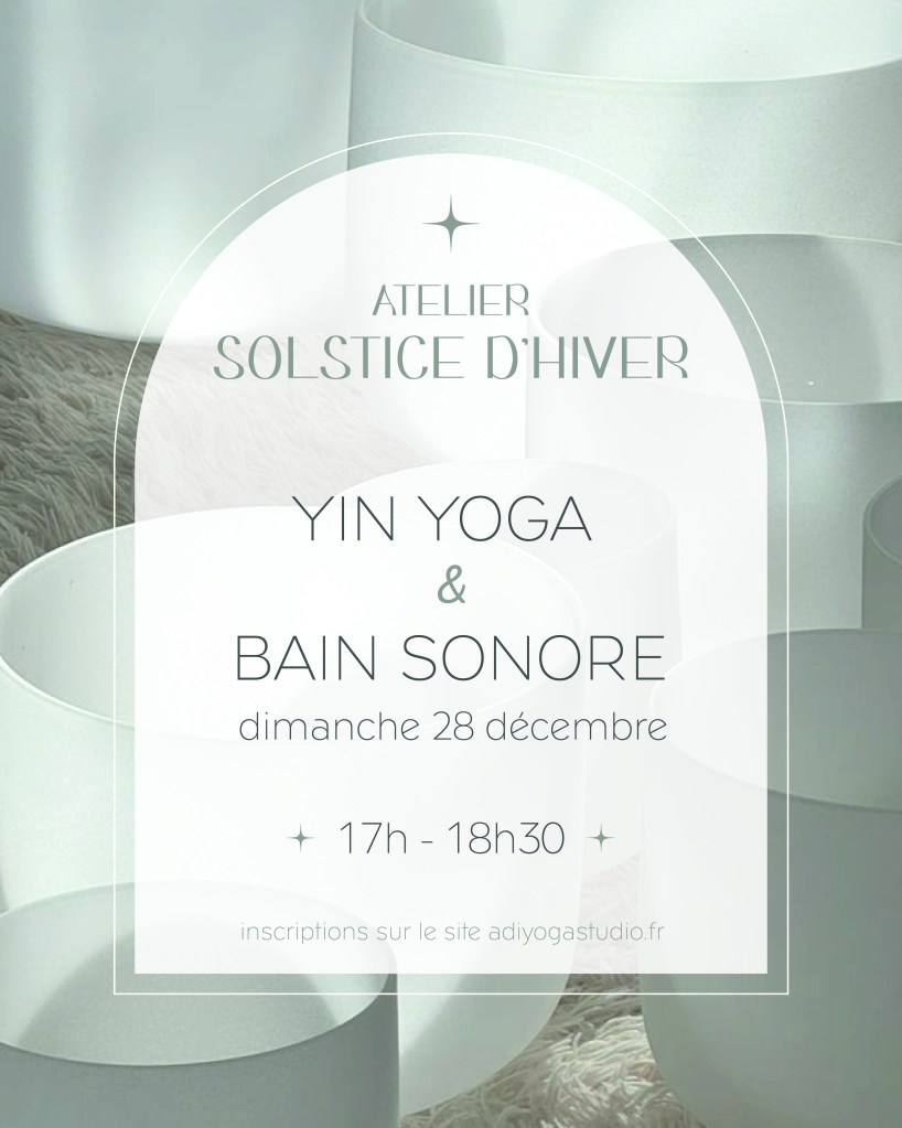Participez à un atelier spécial au studio de Caen pour célébrer le solstice d’hiver. Une séance douce mêlant Yin Yoga et bain sonore aux bols en cristal, éclairée à la bougie, idéale pour se détendre profondément et accueillir l’hiver en conscience 🕯️